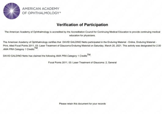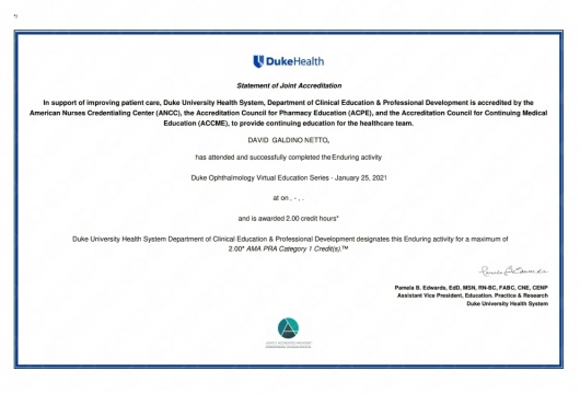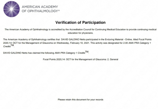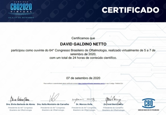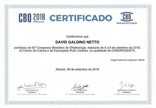 Ganhador da Competição II Phaco Olympics, realizado durante o 63º Congresso Brasileiro de Oftalmologia (2019).