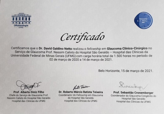 GALDINO NETTO, D.; FILHO, A D ; A H , GONÇALVES DA SILVA ; TEIXEIRA, R ; CRONEMBERGER, S ; MILHOMENS, E G . Diretrizes de Avaliação e Acompanhamento do Glaucoma Congênito 2020 (40º Congresso do Hospital São Geraldo)